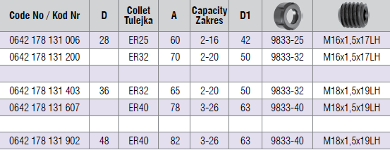 OPRAWKA ZACISKOWA (do tulejek ER DIN 6499) do narzędzi z chwytem walcowym