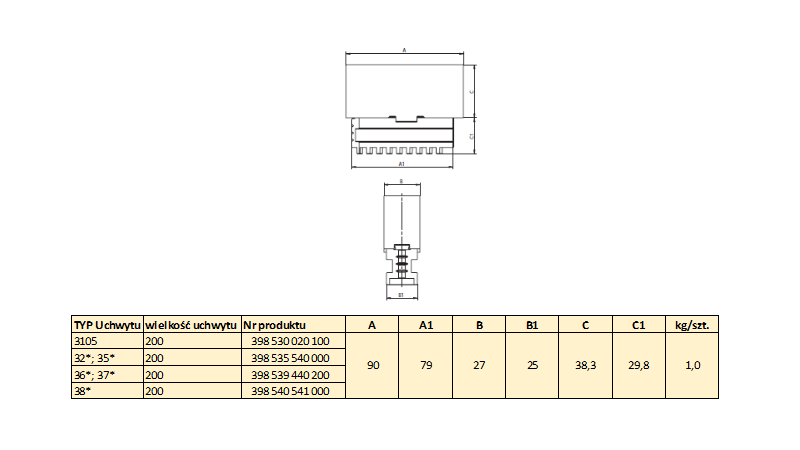 Szczęki dzielone miękkie do uchwytów samocentrujących spiralnych 3600;3700-200
