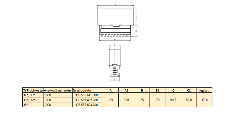 Szczęki dzielone miękkie do uchwytów samocentrujących spiralnych 3800-1000