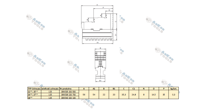 Szczęki dzielone twarde do uchwytów samocentrujących spiralnych 3500;3200 – 125
