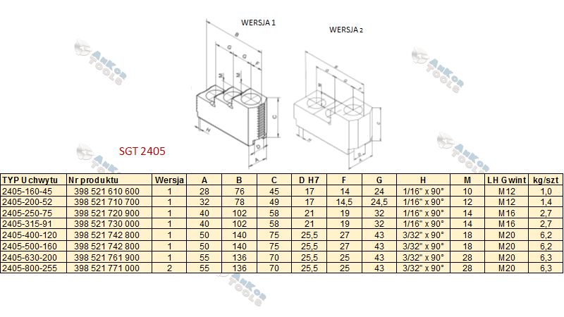 Szczęki górne twarde do uchwytu z mocowaniem mechanicznym 2405-160-45