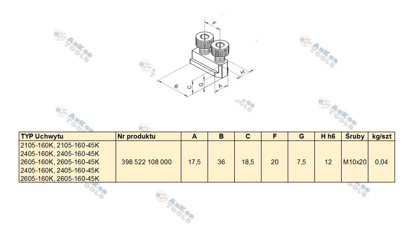 Wkładka teowa do mocowania szczęk górnych, do uchwytu z mocowaniem mechanicznym