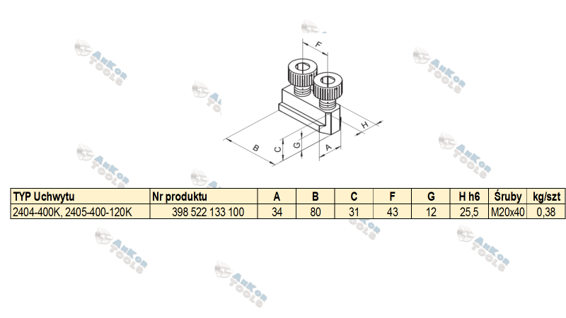 Wkładka teowa do mocowania szczęk górnych, do uchwytu z mocowaniem mechanicznym