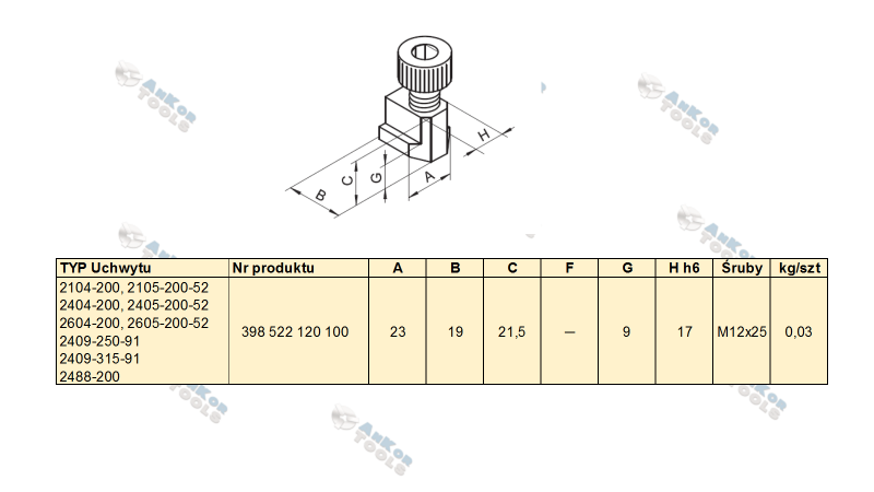 Wkładka teowa do mocowania szczęk górnych, do uchwytu z mocowaniem mechanicznym